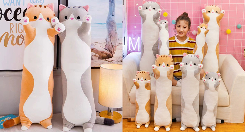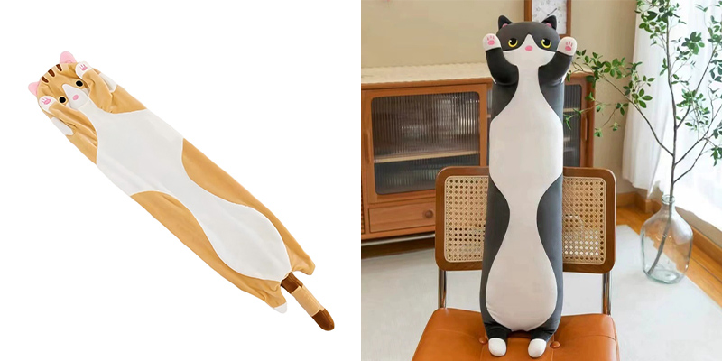 Ten produkt jest wykonany z pluszowej tkaniny z napełnianiem bawełnianym. Patrząc z zewnątrz, wygląda jak długa poduszka w kształcie kota i jest bardzo praktyczna.